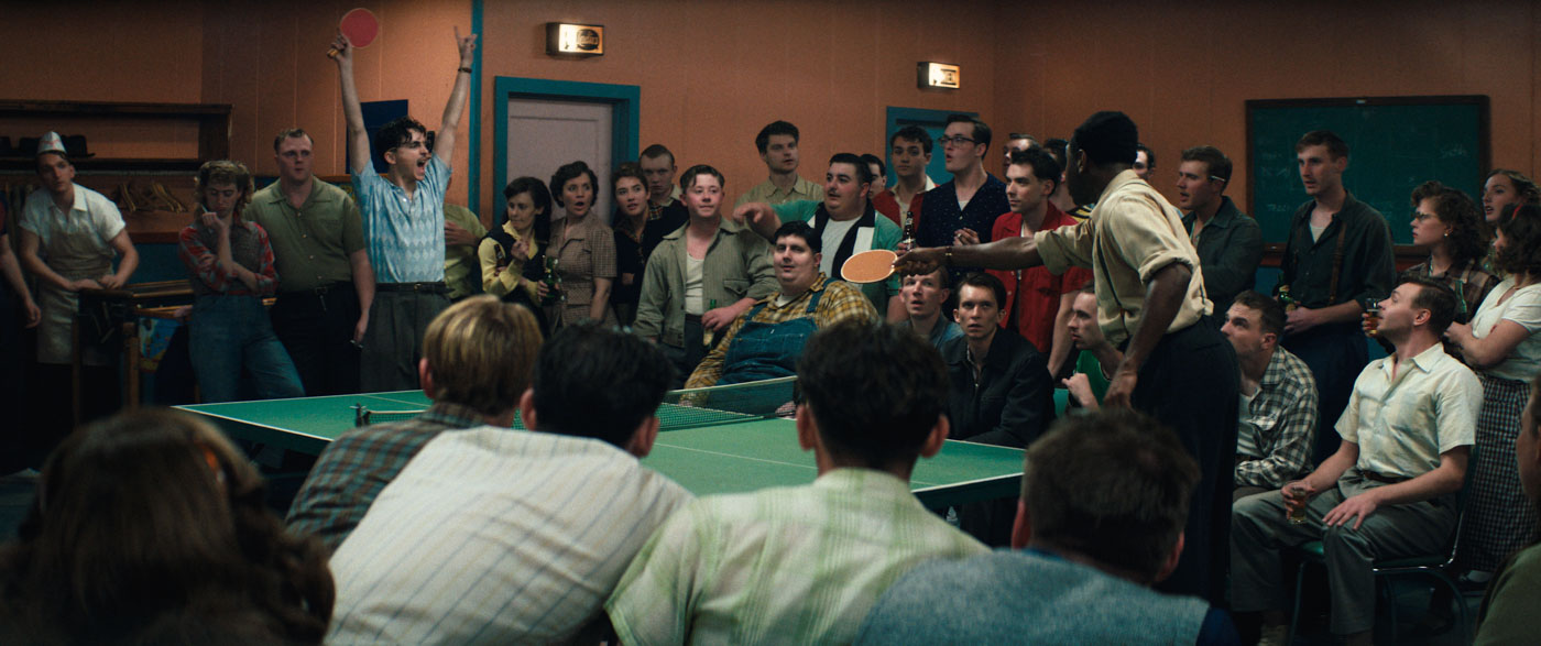— Вы знаете, это очень сильно зависело от сцен. К примеру, сцены в боулинг-клубе действительно требуют очень много энергии как от главного героя, так и от, как минимум, сорока актеров массовки, которые должны каждый по-своему участвовать в разговоре. И это действительно держало Тимоти и Тайлера в напряжении, практически на грани. К тому же такая атмосфера создает определенную нестабильность, которая очень соответствует энергетике Тимоти, особенно в той сцене, когда они с Тайлером разыгрывают игроков в клубе. Действительно и на съемках мы пытались поддерживать нужный градус напряжения, который вы увидели в кадре. Но есть в фильме сцены, в которых это напряжение спадает. Важно понимать, что Марти по своей природе никогда не выключается, и мы чувствуем, что эта энергия и движение исходят из персонажа и его предыстории, как и из его желания постоянно поддерживать огонь своей мечты. Потому что как только его мечта отвергается или считается неоправданной, она умирает.