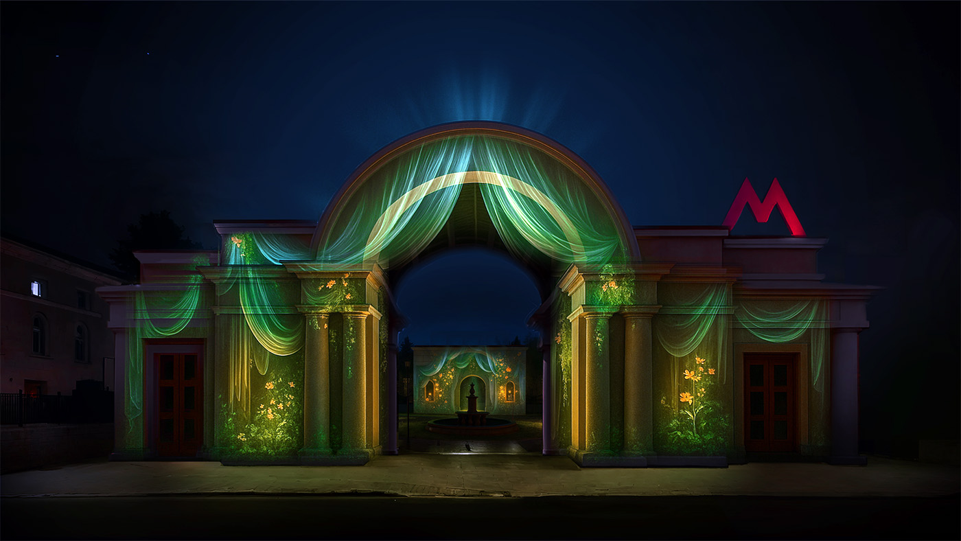 Гостей мероприятия ждут масштабные световые инсталляции и 3D-мэппинг. Центральным элементом станет световой LED-туннель на главной аллее, создающий эффект движения. В зоне «Москва 1940-х» с помощью видеомэппинга на фасаде башни с часами оживут архивные кадры города. Рядом со сценой будет установлен арт-объект в виде самолета с динамическим световым оформлением.
