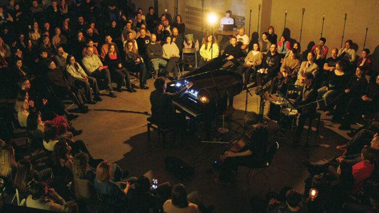 Особое место в его практике занимает 24-часовой эксперимент «Дом», превративший девять залов Башмет-центра в живую творческую лабораторию с импровизациями, медитациями и звуковыми опытами. Ключевой особенностью стала абсолютная свобода аудитории: зрители самостоятельно исследовали пространство, занимаясь своими делами или участвуя в происходящем.