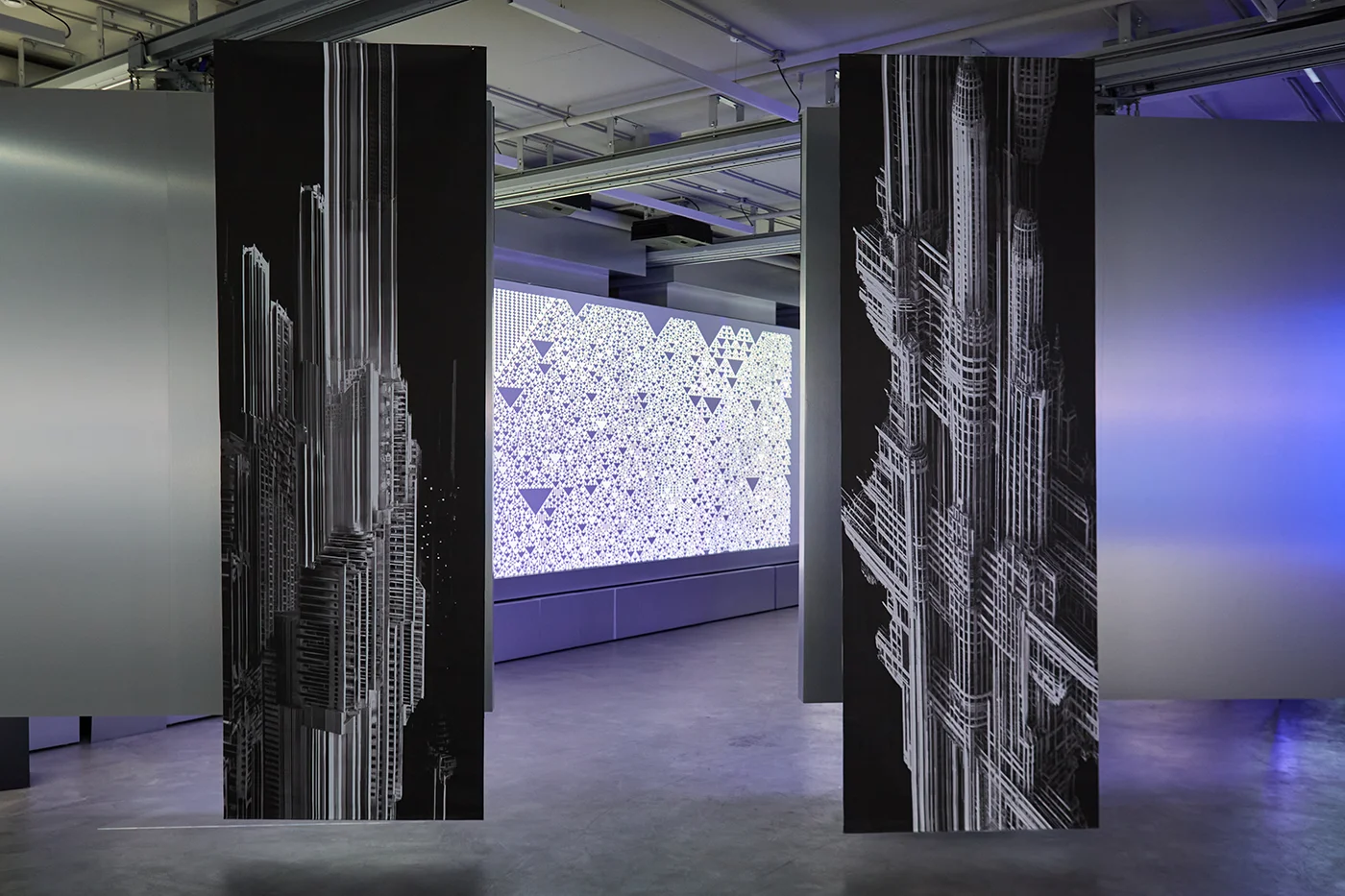 На выставке это главные герои, расположенные преимущественно в углах экспозиции. Они наблюдают за посетителями сквозь фракталы и глитч, смотрят на мир в фиджитал-, гибридной реальности.