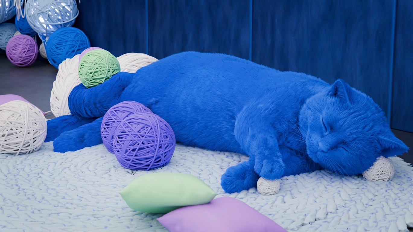 Стенд строится вокруг ощущения уюта, тепла и тактильного комфорта — пространства, в котором захочется остаться. Вязаное полотно на стенах создает уют и чувство дома. Детали поддерживают этот образ: клубки пряжи, вязаные подушки, ковёр и кот создают ощущение спокойствия и чувства «своего» места. Сбоку разворачивается зона тафтинга, где мастера в реальном времени будут создавать уникальное ковровое панно. Посетители выставки смогут попытать удачу и получить его на память.