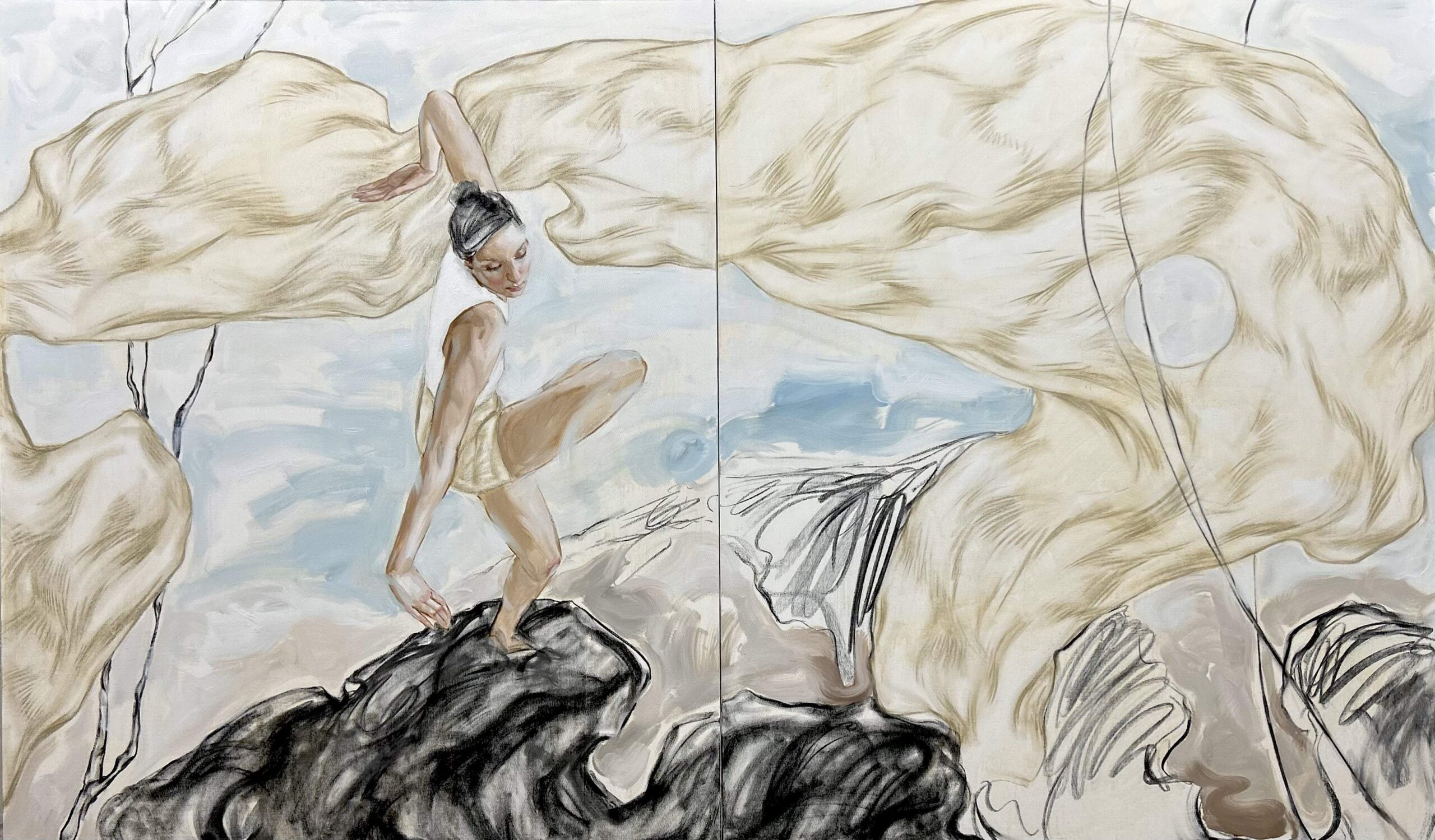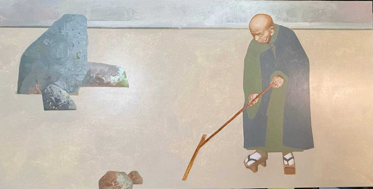 В центре экспозиции — «След покоя» (2026), где жест монаха в саду камней становится метафорой осознанной простоты. Работы «Память крыш», «Шёлк и зверь», «Пение в траве» исследуют границу между культурой и инстинктом, формой и присутствием. Очищенная линия, редуцированный цвет и активная роль пустоты формируют пространство созерцания и замедления.