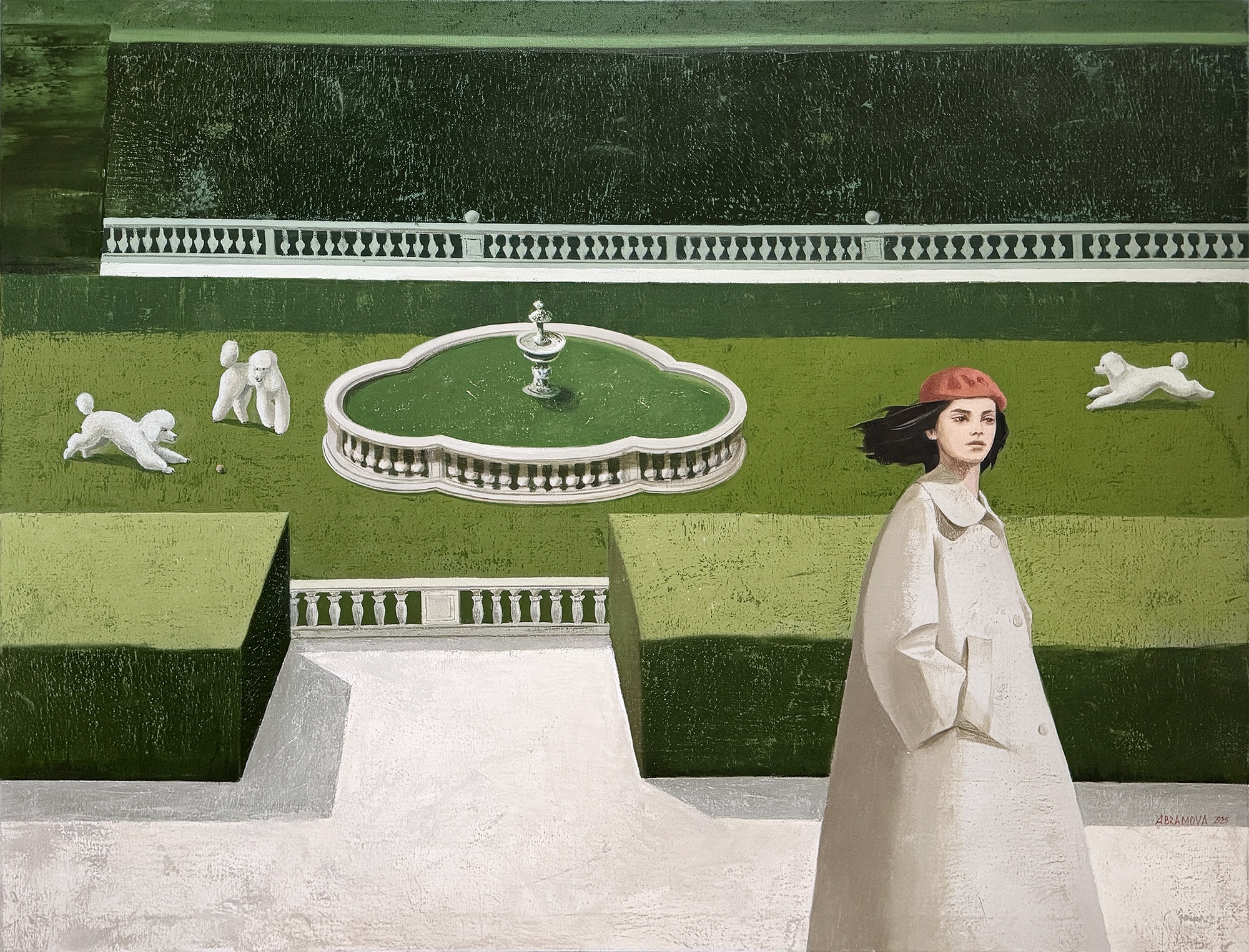 Серия работ Татьяны Абрамовой о парках предстаёт как театральная сцена. Геометрия террас, балюстрад и стриженых газонов здесь становится декорацией для интригующих сюжетов. Парк здесь — собирательный образ: пространство на стыке природы и архитектуры, реальности и воспоминания.