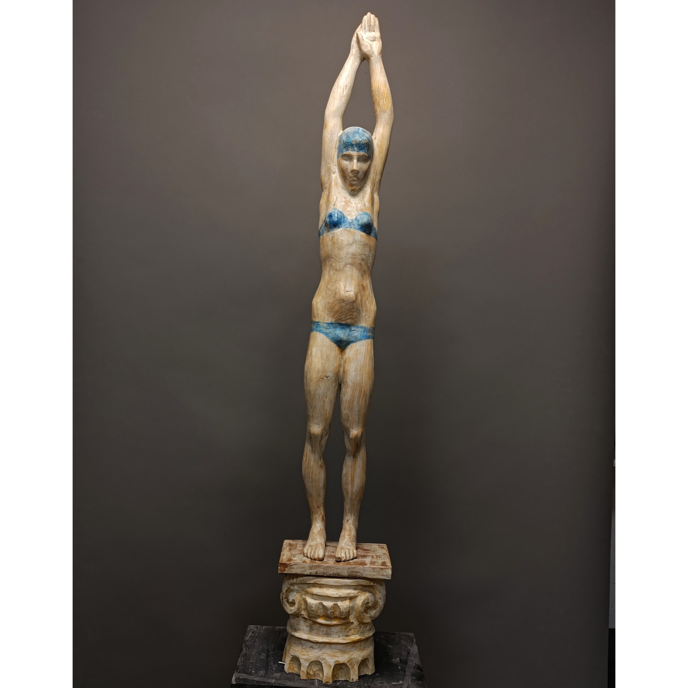 В серии «Пловцы» Сергей Судаков изображает пластику тела напрямую, с натуры. Он фиксирует внутреннюю динамику человека в момент решения прыгнуть в воду. Лаконичные фигуры композиционно тяготеют к инсталляции, превращая пространство в часть художественного материала. Герои стоят на капителях колонн разной степени разрушенности, будто проступивших сквозь толщу веков и символизирующих основы старого мира — распавшейся Римской империи, — служат ступенью в новый мир.