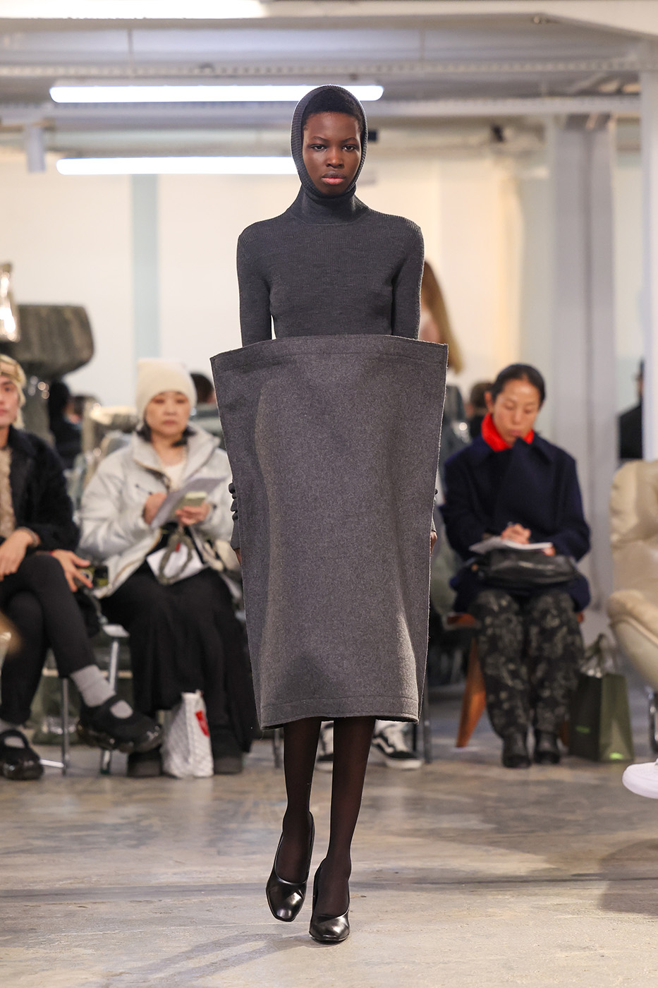 Редко когда сезон приносит принципиально новый силуэт, который, к тому же, подхватывается не одним-двумя ключевыми брендами, а сразу целой плеядой. Но этой зимой мы видим на подиумах необычный вариант юбки-карандаша — с расширенной талией, в результате силуэт получается по-настоящему прямоугольным. Держатся такие юбки либо за счет крупных складок на поясе и жесткости материала, как у Prada и Tod’s с их кожаными юбками, либо за счет хитроумных внутренних конструкций, как, видимо, сделали дизайнеры Мари Адам-Линард и Дуран Лантинк для своих именных брендов Marie Adam-Leenaerdt и Duran Lantink. Чтобы уравновесить геометричный силуэт, верх лучше выбирать обтягивающий — лонгслив, водолазка или майка будут идеальны.