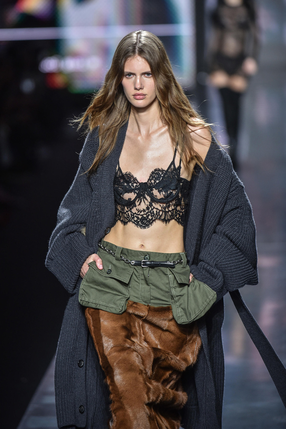 Несмотря на то, что зимой мы стараемся закутаться поплотнее в вязаный трикотаж, пальто и шубы, под теплыми слоями никто не мешает носить тончайший шелк и гипюр. Более того, дизайнеры поощряют ненароком демонстрировать кружевные детали в вырезах верхней одежды и пиджаков: как на показах McQueen и Dolce&Gabbana, пикантные гипюровые элементы нет-нет да и показываются — или даже нарочито демонстрируются. Тут есть также влияние еще одного большого тренда — неоготики, интерес к которой всколыхнулся в поп-культуре благодаря сериалу «Уэнсдей» и фильмам вроде «Носферату» и «Франкенштейн», и мрачные фантазии воплощаются в отсылках к викторианским силуэтам на подиумах. Тренд держится уже не первый сезон и явно не закончится нынешним, так что берем на заметку.