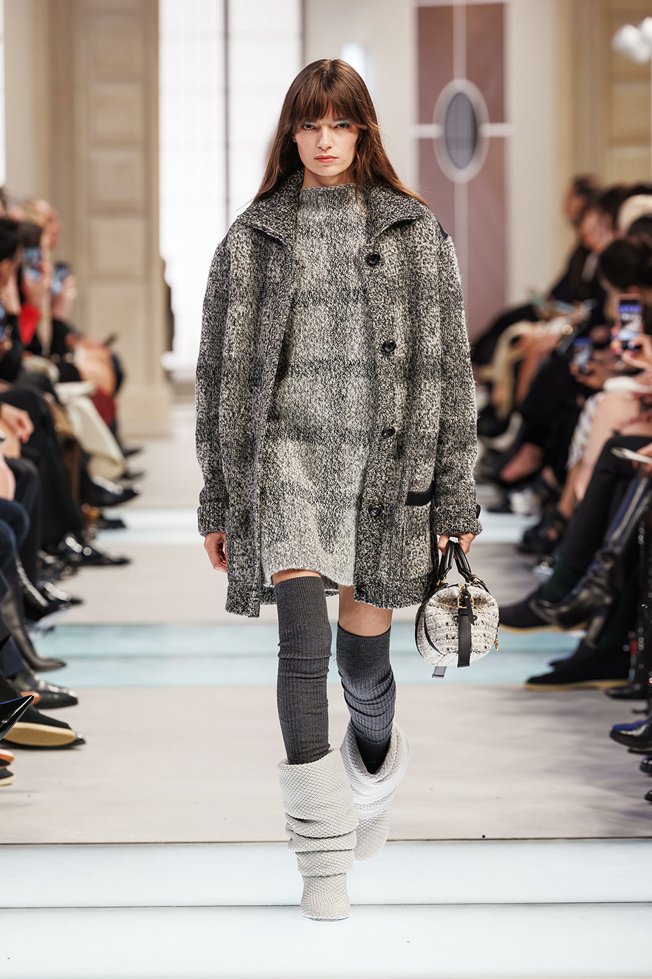 У модных тенденций иногда бывает интересная эволюция. Так, в прошедшем весенне-летнем сезоне дизайнеры неожиданно вернули из небытия такой предмет гардероба как капроновые гольфы. Еще недавно мы скрывали их под длинными юбками и брюками, но с легкой подачи Миуччи Прады в Miu Miu все модники полюбили цветные гольфы в пару к длине миди и даже мини — они стали самодостаточным акцентом. Зимой, конечно, нужно делать поправку на погоду, и паутинчатый капрон уже не наденешь, поэтому на подиумах мы видим более плотные версии гольфов, от хлопковых, как у AKNVAS, до шерстяных, как у Louis Vuitton, и даже латексных, как в коллекции Gabe Gordon.