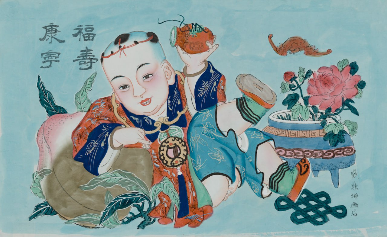 Раскрашенная новогодняя картина Янлюцина «Счастье, долголетие, здоровье и покой». Эпоха Цин (1636 или 1644—1912)