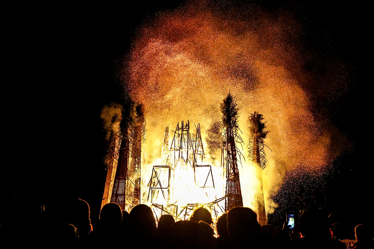 21 февраля в Никола-Ленивце сожгут «Горящее сердце» — 25-метровую композицию Николая Полисского в виде темного леса из 16 башен. Сначала загорится сердце, вознесенное на центральный подиум, затем вспыхнут башни.