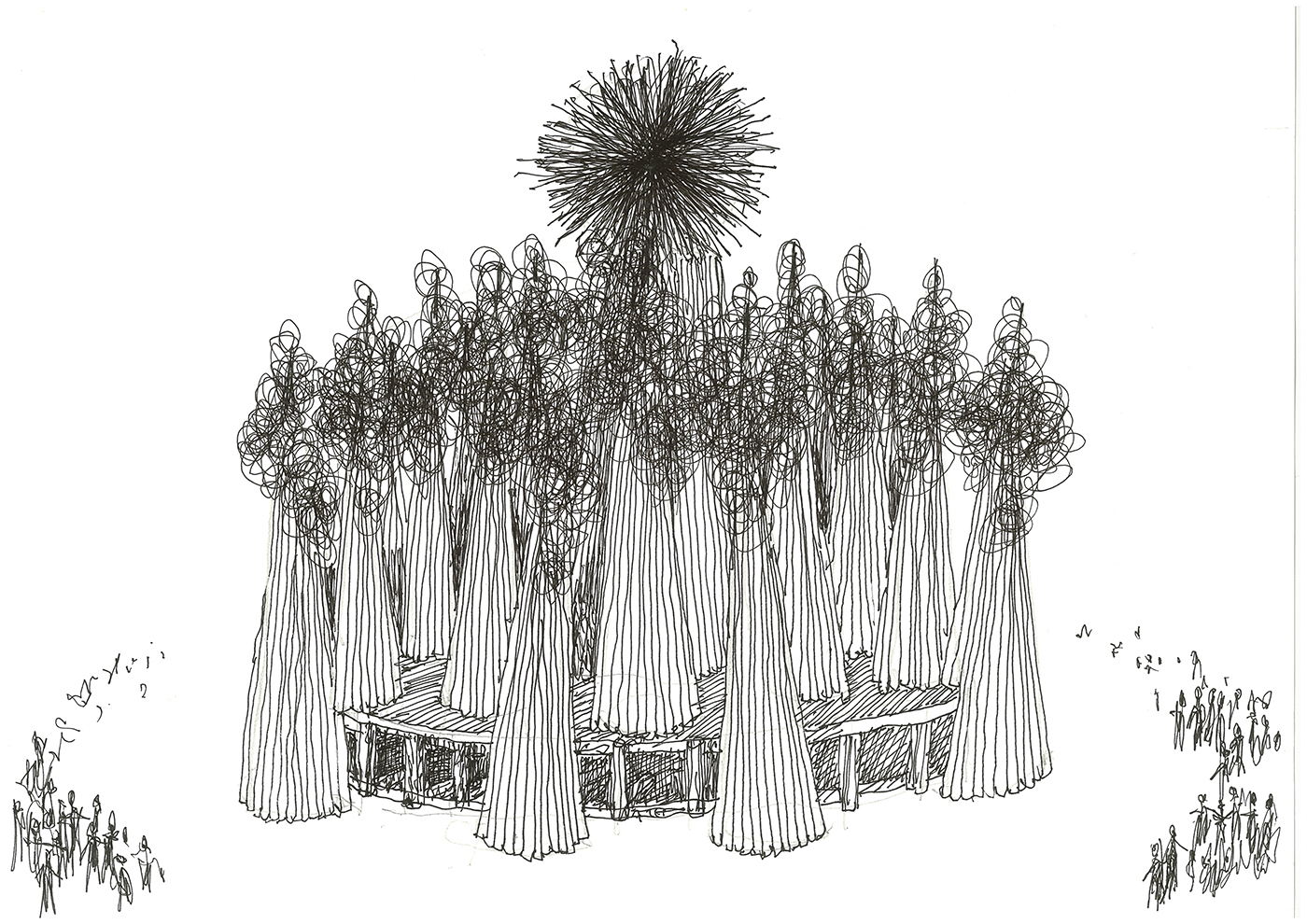 Объект представляет собой композицию из шестнадцати деревянных башен высотой до двадцати метров, размещенных по кругу. Башни декорированы лозой. В центре композиции на пьедестале расположен сферический элемент, который авторы называют абстрактным образом сердца. В парке объясняют, что задача — не сжечь сердце, а создать его горение.