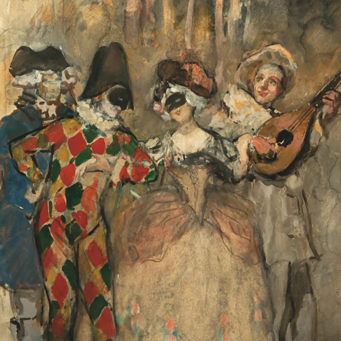 На выставке будут представлены работы выдающихся русских художников, включая Владимира Маковского, Сергея Судейкина, Сергея Виноградова и Абрама Архипова. Их произведения запечатлели яркие моменты уличных гуляний, придворных балов и домашних праздников, отражая, как маскарадная мода проникала в изобразительное искусство и театрализовала повседневную жизнь.