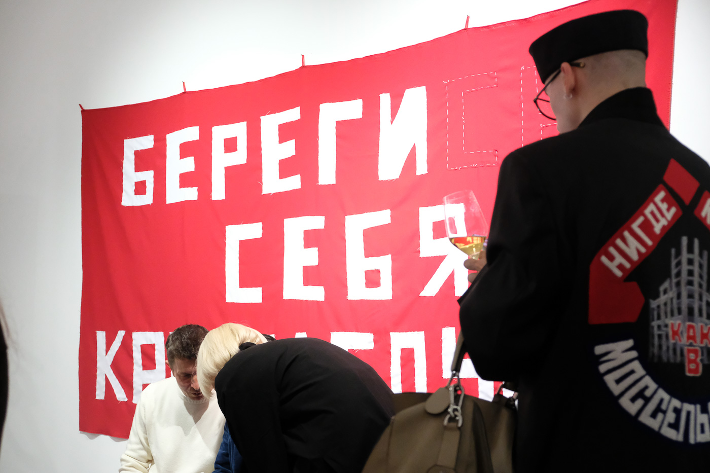 До 1 ноября в галерее ART&BRUT работает выставка Саши Браулова «Подуй, пожалуйста, и в мою сторону». В проекте, состоящем из уличной серии, документальной вышивки и текстильных баннеров, он пытается уловить незримые силы, которые меняют нашу жизнь. Центральная тема — метафора жизненных порывов, которые могут быть как разрушительным тайфуном, так и попутным бризом. Подробнее о выставке — в фоторепортаже RTVI.