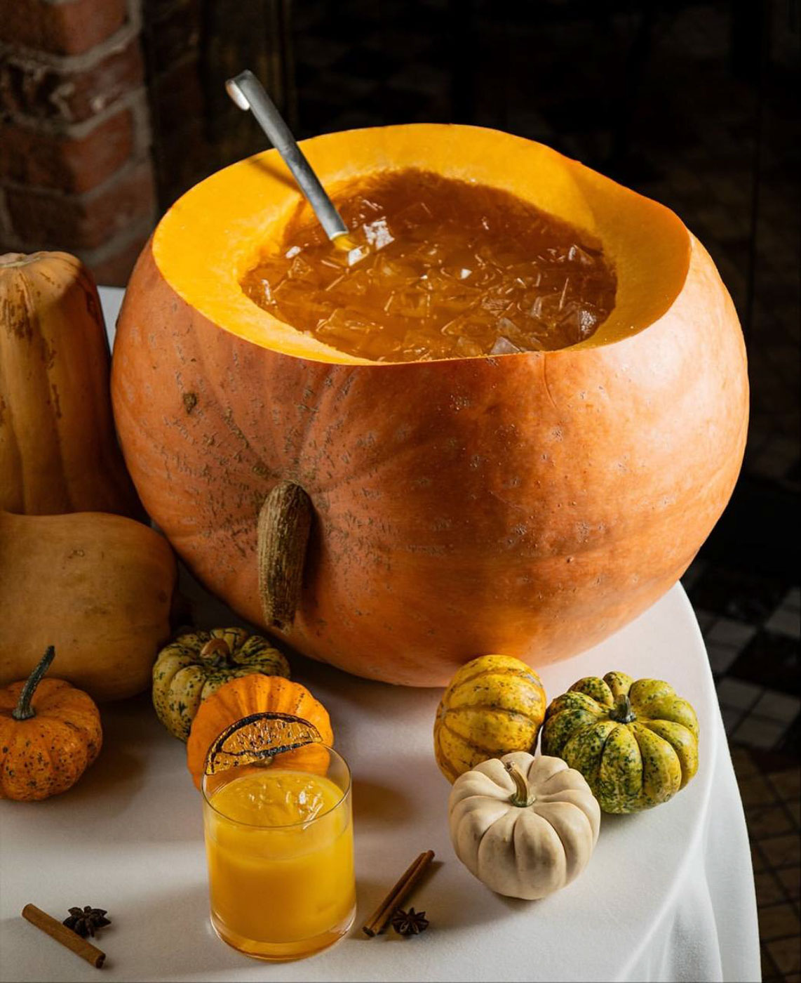 Кофейни и рестораны также поддерживают тему праздника. В сети OMG coffee представлен тыквенный латте с авторским сиропом, взбитыми сливками и песочной крошкой. А в ресторане «Крабыкутабы» 31 октября всем гостям будут подавать тыквенный пунш прямо из огромной тыквы. Кроме того, тыквенные напитки можно отыскать и в сетевых кофейнях, если хочется полакомиться тыквенным латте, можно забежать в Stars Coffee или «Дринкит», где тыквенное пюре добавляют прямо в кофейный напиток.