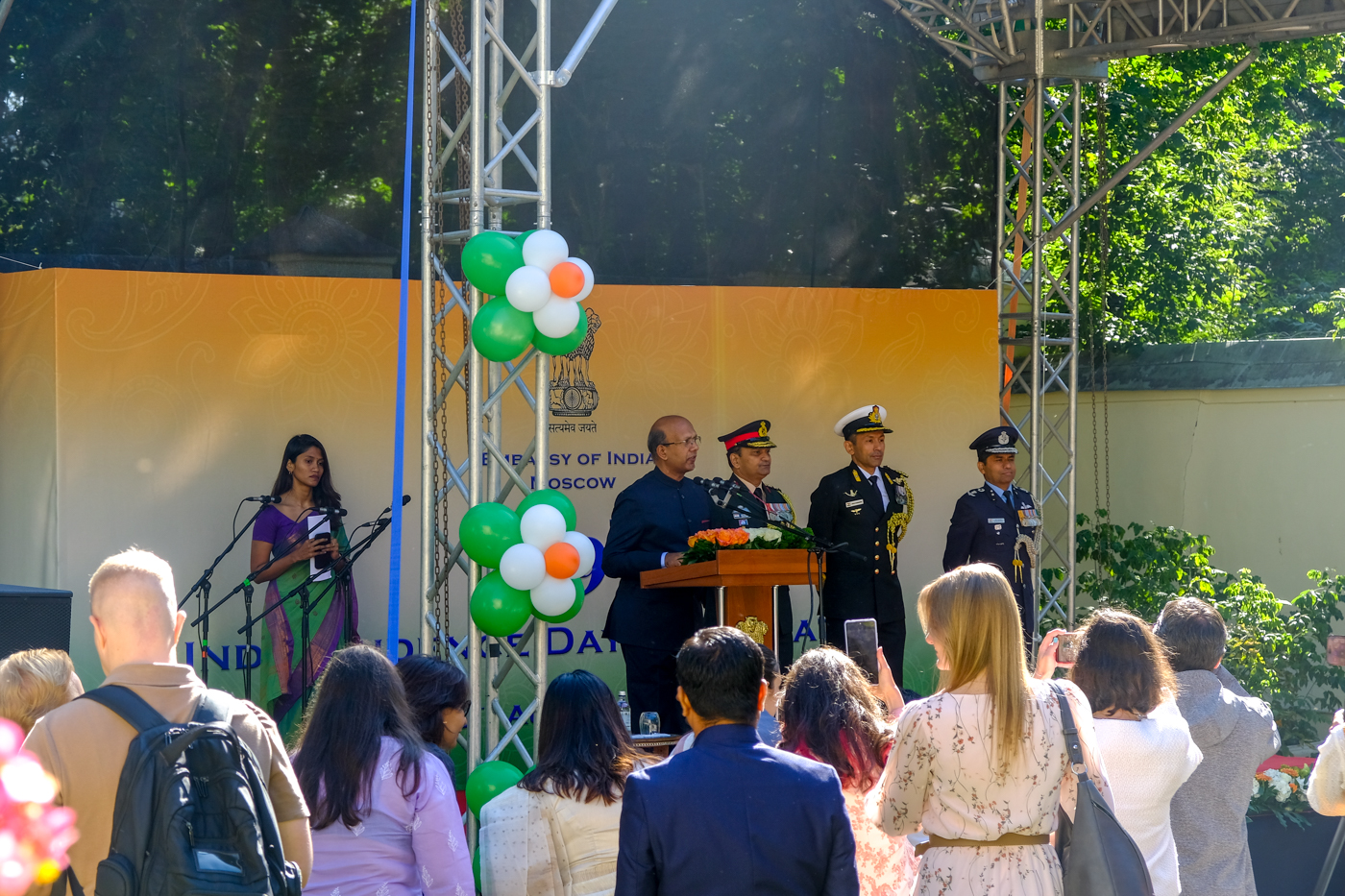15 августа в Индии отмечается День независимости. В честь 79-й годовщины освобождения страны в посольстве Индии в Москве прошёл большой праздник. Мероприятие началось с возложения послом Индии Винаем Кумаром цветов к памятнику Махатме Ганди, после чего был поднят флаг, а дипломат прочёл обращение президента Индии. На празднике выступили индийские и российские танцевальные коллективы, исполнившие традиционные индийские и болливудские танцы. Подробнее о мероприятии — в фоторепортаже RTVI.