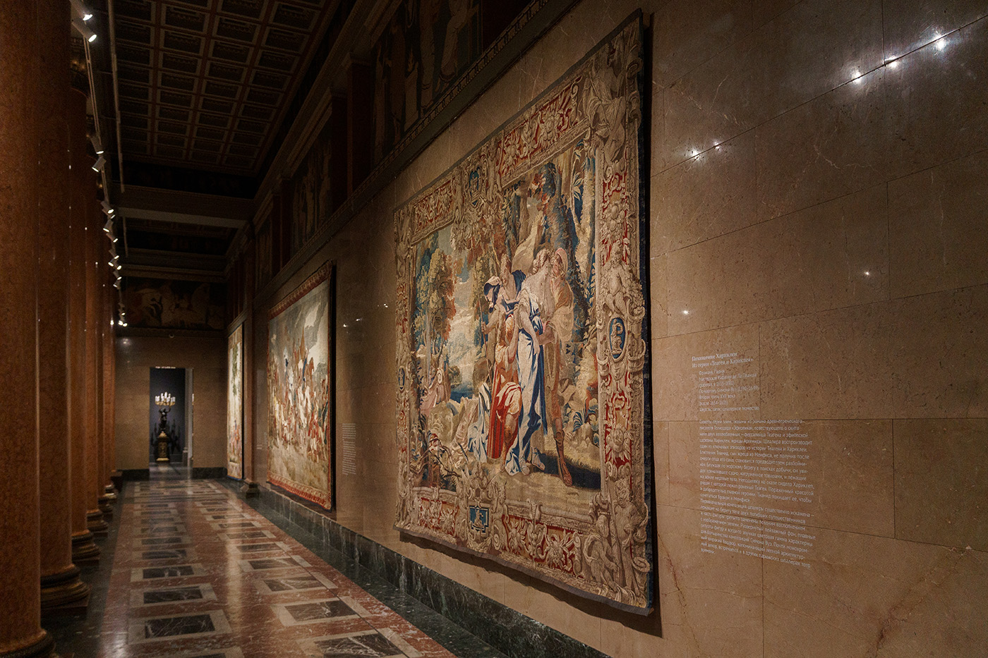 Особой гордостью выставки являются две шпалеры, приобретенные музеем в 2014 году и показанные впервые. По словам куратора Елены Пильник, старшего научного сотрудника отдела старых мастеров, самой раритетной и лучшей вещью является шпалера начала XVI века «Триумф Славы». «До сих пор, каждый раз, когда я ее вижу, не верю, что она к нам попала», — призналась Пильник. К числу наиболее ценных произведений относится и брюссельская шпалера конца XVI века «Триумф Помпея».