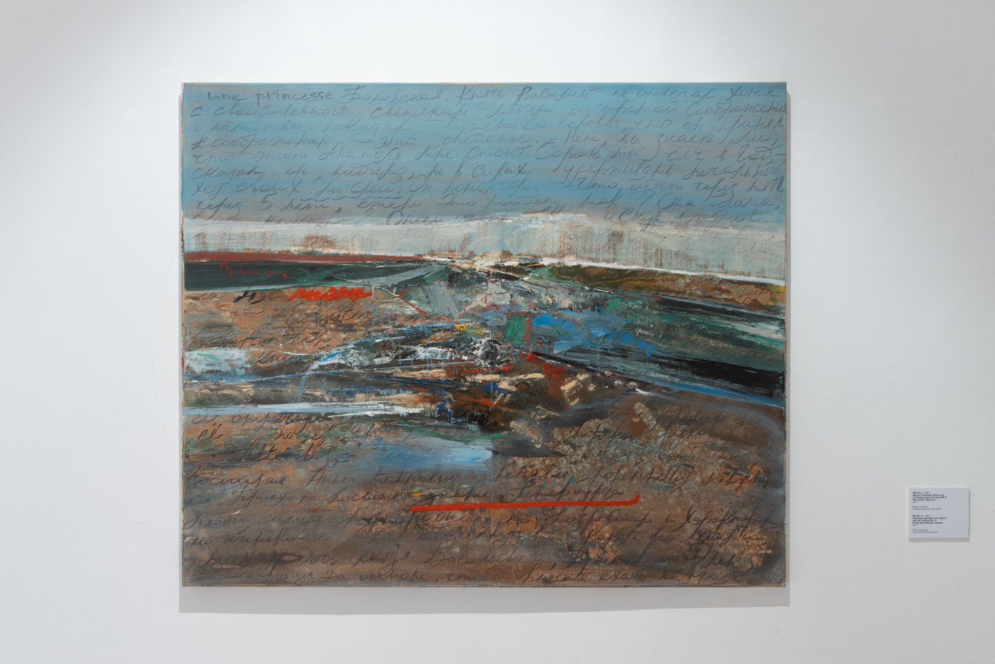 — Слияние китайской и русской культур в моём творчестве происходит прежде всего на уровне художественной методологии, а не в простом наборе символов. Представленная работа «Диалог между объектом и воздушным потоком NO:8» является ключевым выражением этой концепции.Текст на русском языке на картине — это одновременно культурный отпечаток моего обучения в России и визуальное воплощение русского художественного духа; в то время как цветовая экспрессия берёт начало в приёмах изображения и пространственных концепциях китайской живописи тушью, стремящейся запечатлеть безграничность в непрерывном изменении предметов.