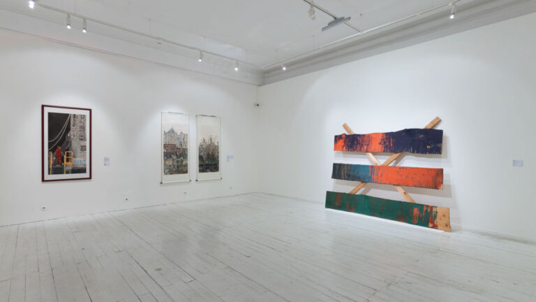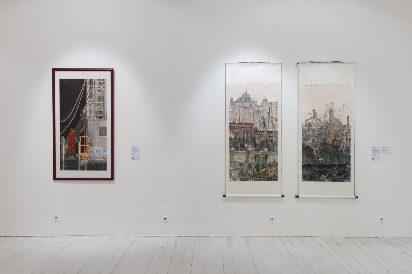 — Архитектурная основа экспозиции — две анфилады залов и коридор между ними. Это изолированные пространства и зритель последовательно попадает в разные локации. В каждом зале — своя история. Она в большинстве случаев считывается на уровне восприятия, но мы дополнительно размещаем теги-заголовки на двух языках, чтобы подчеркнуть тематическое значение собранных здесь работ. Темы залов соответствуют группам работ китайских художников. Мы постарались в этих блоках выделить основные культурные тренды в современном искусстве КНР, а это — развитие традиционных методов, размышление о роли социума, урбанизация, индустриальная тема, философия и метафизика. Ну, и, конечно, для крупноформатных работ Му Кэ отведен самый просторный зал на этаже, где из окон открывается вид на улицу Петровку и архитектуру Высоко-Петровского монастыря. Вот такой интересный диалог намечается.