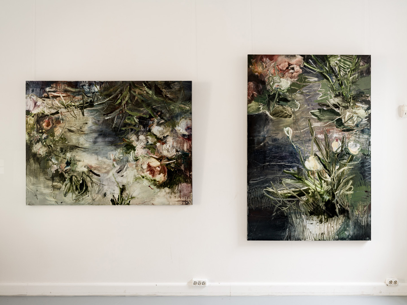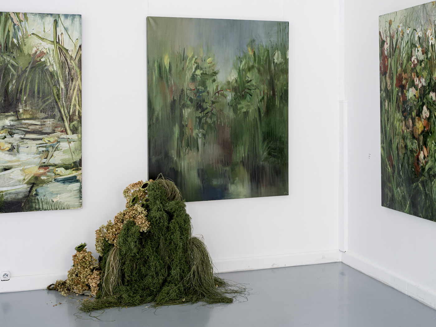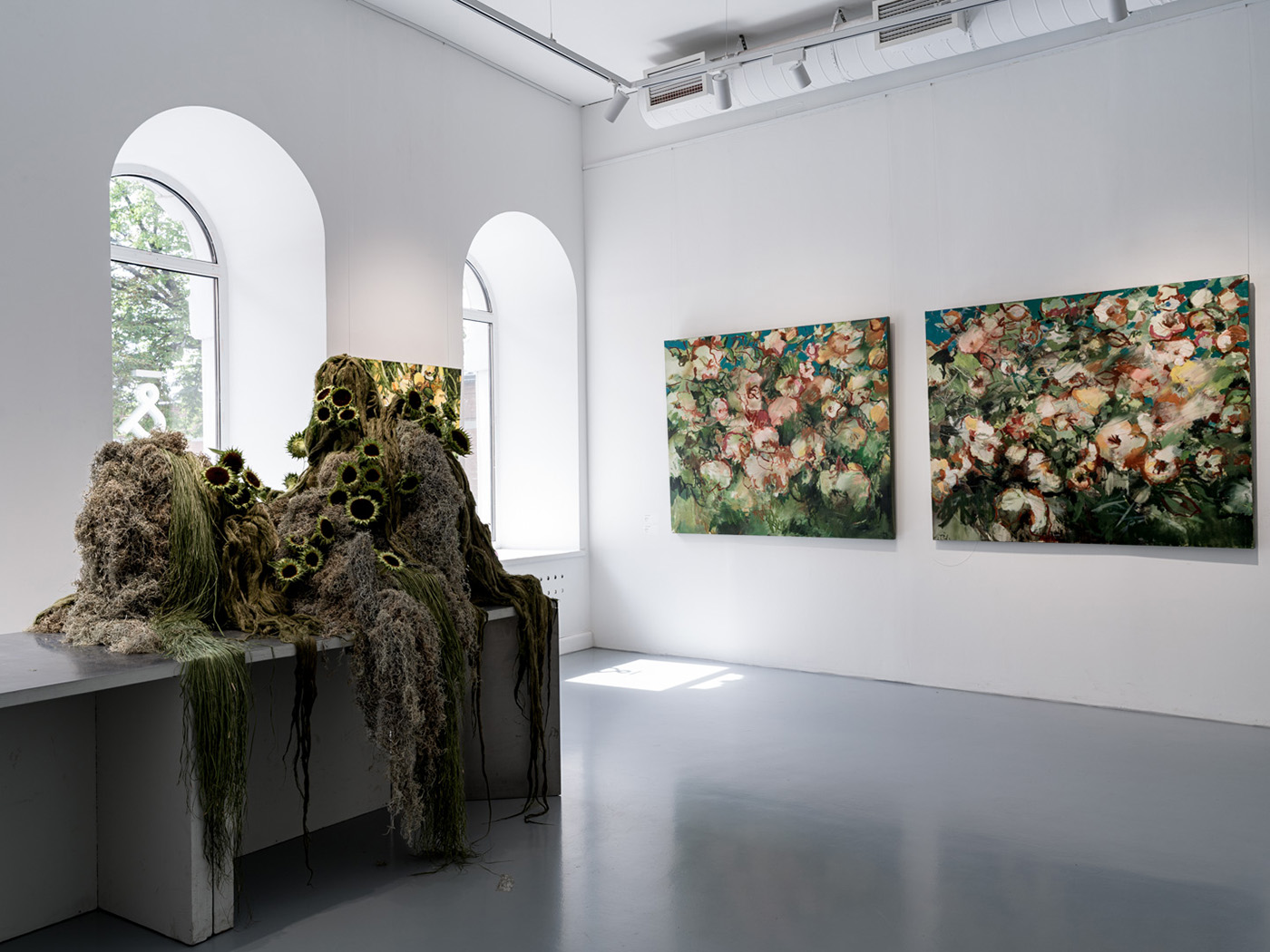 — Таша уже больше года работает над этой серией работ, и так как летняя серия получилась наиболее цельной по количеству работ, мы решили в середине лета сделать ей выставку — как раз о лете. Мы дополнили её ещё одной темой из серии «13 сезонов. Воды Миллюзины», так как в этой серии также были завершены все холсты, и мы решили её показать.