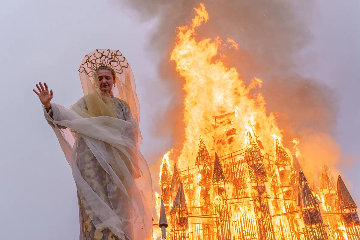 Надеюсь, гореть будет по-другому. Сейчас продумываем новые материалы, расположение, формы. Нам самим интересно себя развлечь и доказать, что мы можем придумать что-то новое. Каждый раз мы планируем качественное зрелище, но отличающееся от прошлого. Это нормальная работа художников на большом пространстве, где дается свобода проявить себя максимально.