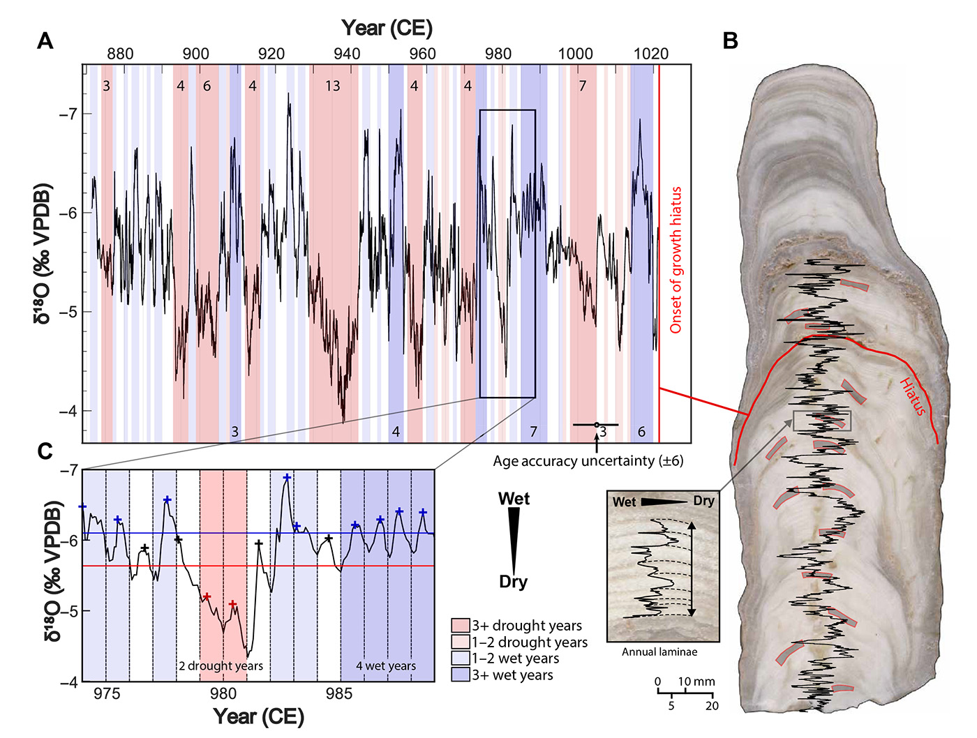 Анализ показал, что в указанный период наблюдались восемь сезонов дождей и засух, длившихся минимум по три года. Наиболее длительная засуха составляла 13 лет, она продлилась с 929 по 942 год и стала самой длительной непрерывной засухой в исторический период — даже продвинутые способы управления водными ресурсами не позволили майя избежать последствий столь долгой засухи, считают авторы.