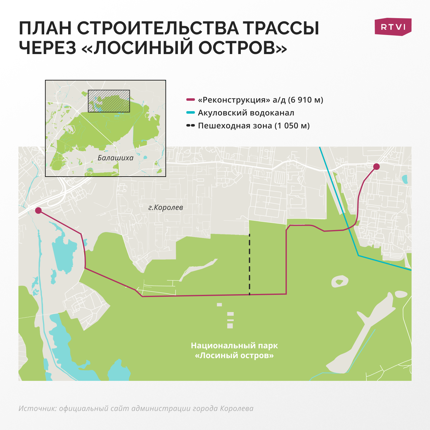 В экспертном совете отмечают, что на территории национального парка даже новая редакция положения Минприроды допускает строительство объектов, которые связаны с функционированием “Лосиного острова” или жизнеобеспечением населенных пунктов, находящихся на его территории. При этом строительство въезда в Королев не входит в число таких мероприятий, так как Королев не входит в состав национального парка.
