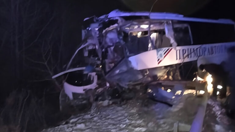 На трассе «Раздольное — Хасан» в районе поселка Барабаш Хасанского района 22 января столкнулись пассажирский автобус и грузовик. В результате погибли три человека, еще девять получили травмы различной степени тяжести и были госпитализированы.