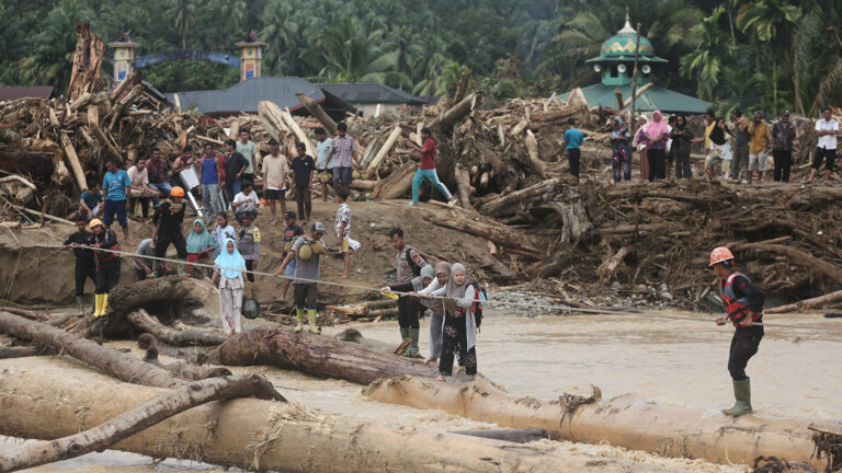 Спасатели пытаются добраться до выживших, заблокированных наводнением, но их работе мешают размытые дороги и разрушенные мосты. По данным ЮНИСЕФ, некоторые районы, включая Тапанули-Тенгах в Северной Суматре и Агам в провинции Ачех, оказались отрезаны от остальных из-за оползней и селей.
