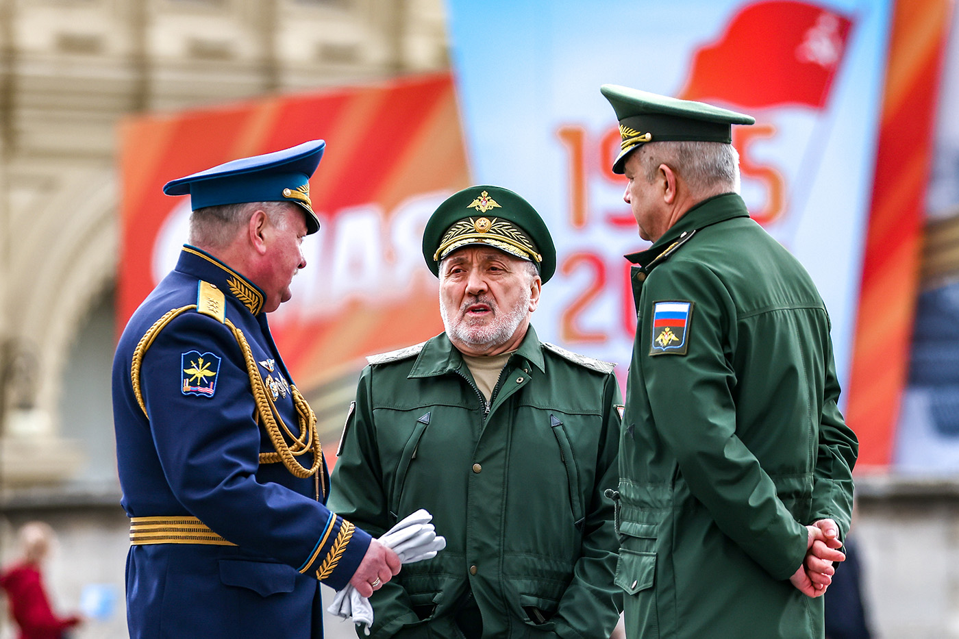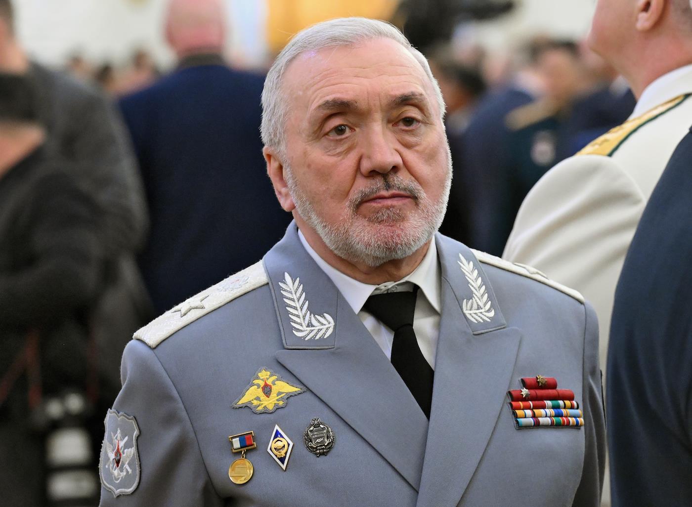 Заместитель министра обороны РФ Руслан Цаликов (в центре) во время генеральной репетиции парада, посвященного 79-й годовщине Победы в Великой Отечественной войне, на Красной площади в 2024 г.