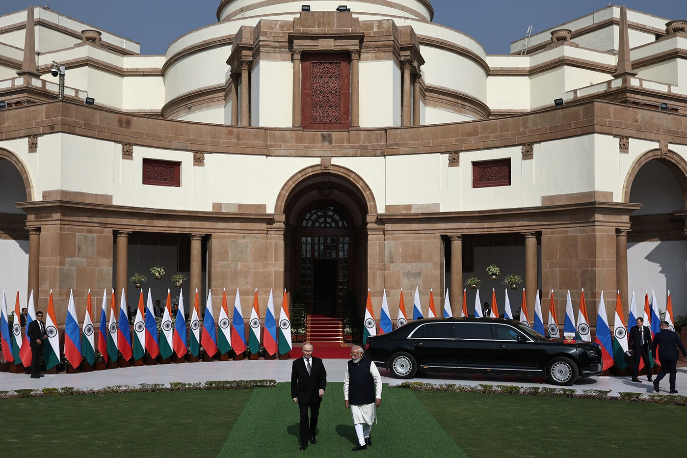 Затем Путин и Моди встретились на основной части переговоров, которая состоялась в президентском дворце в Нью-Дели. Премьер Индии назвал историческим этап российско-индийских отношений. По его словам, российский глава 25 лет назад заложил основу этого партнерства и «подпитывал эти отношения своим умелым руководством».