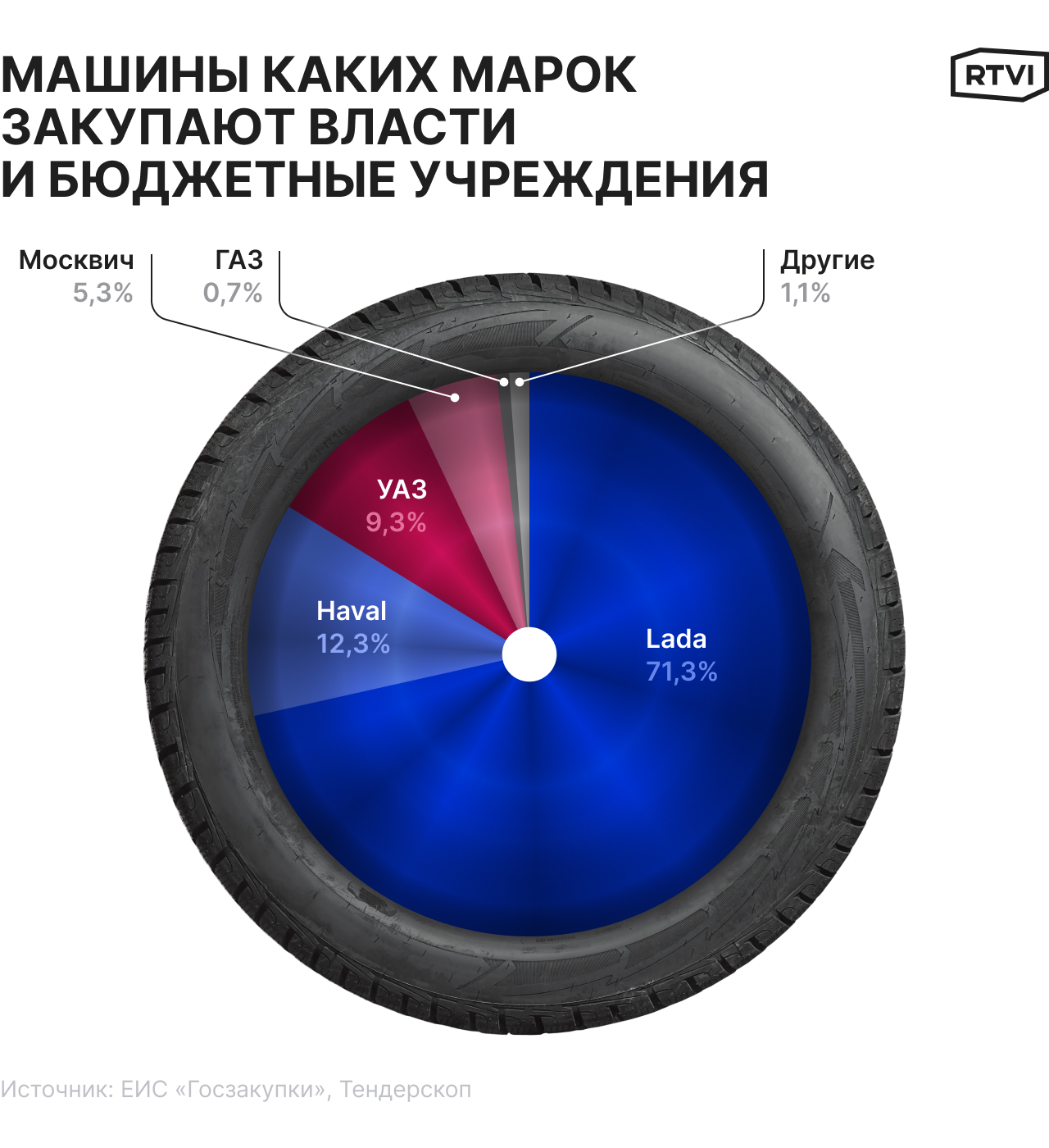 Средняя цена отечественной Lada была ниже, чем стоимость китайских машин. Доля Lada в общем объеме закупок в денежном выражении — 52,5%. По подсчетам “Тендерскопа”, при госзакупках средняя стоимость двух самых популярных моделей Lada — Niva и Granta — составляет 1,52 млн и 1,13 млн соответственно. При этом средняя стоимость закупленных китайских машин существенно выше. В среднем за HAVAL на госзакупках платили 2,87 млн руб., за Chery — 2,75 млн руб., за GEELY — 2,99 млн.