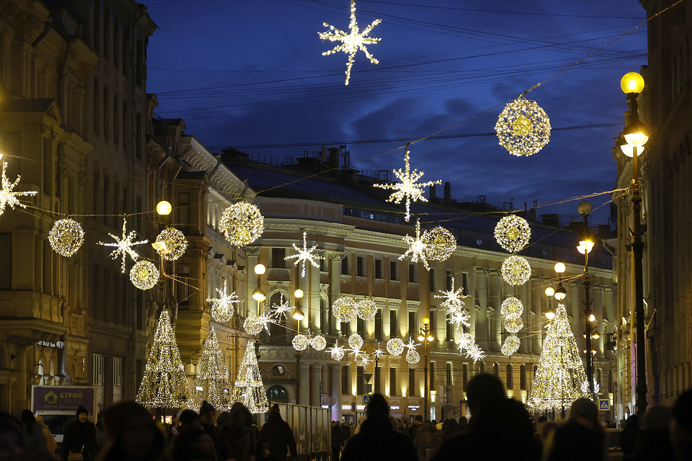 По подсчетам «Тендерскопа», российские города потратили более 3 млрд руб. на новогодние украшения, больше трети этой суммы пришлось на Санкт-Петербург. Украшение улиц к Новому году здесь стоило 1,23 млрд руб. Самый дорогой контракт обошелся городу почти в 40 млн руб. — на такую сумму власти украсили Адмиралтейский район «отдельно стоящим световым тоннелем»..Еще 39,92 млн ушло на украшение того же района отдельно стоящими световыми арками в виде кометы. На остальные 1,2 млрд в городе поставили искусственные новогодние ели, в том числе “мультимедийные”, сделали праздничную подсветку мостов, деревьев, фасадов зданий, улиц и так далее.