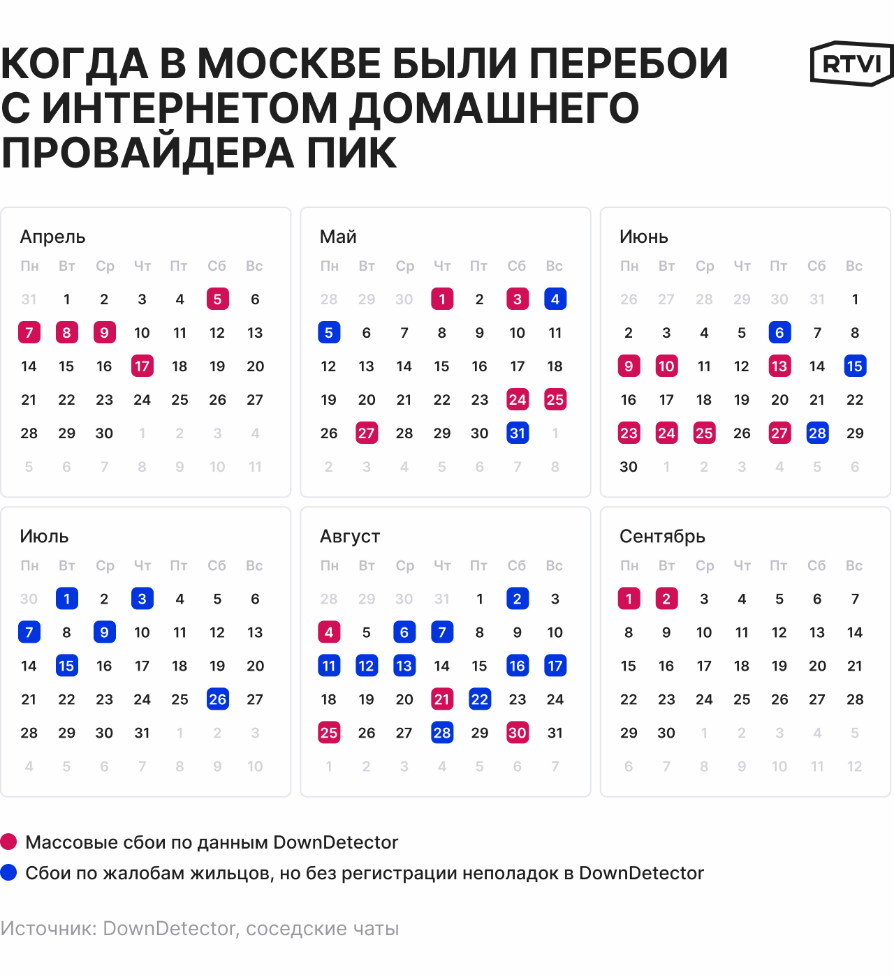 Жители ЖК, построенных группой компаний «ПИК», продолжают регулярно жаловаться на перебои с доступом к интернету. С момента DDoS-атаки в конце марта у домашнего провайдера застройщика — Lovit — были зафиксированы десятки массовых сбоев, и еще больше локальных, обратил внимание RTVI.