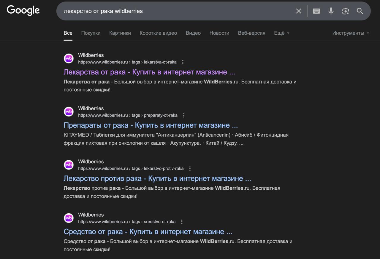 По данным мониторинга МОЗП, на Wildberries свободно реализуются незарегистрированные в России препараты зарубежного происхождения: обезболивающие, антибиотики, иммуномодуляторы, противозачаточные средства, лекарства для лечения онкологии, препараты для повышения потенции. Представители общества утверждают, что речь идет, в том числе, о товарах, не проходивших клинических исследований; их безопасность и эффективность не подтверждены. Часть продукции сопровождается недостоверными обещаниями «полного излечения», что провоцирует потребителей на опасное самолечение, отмечается в обращении к главе правительства.