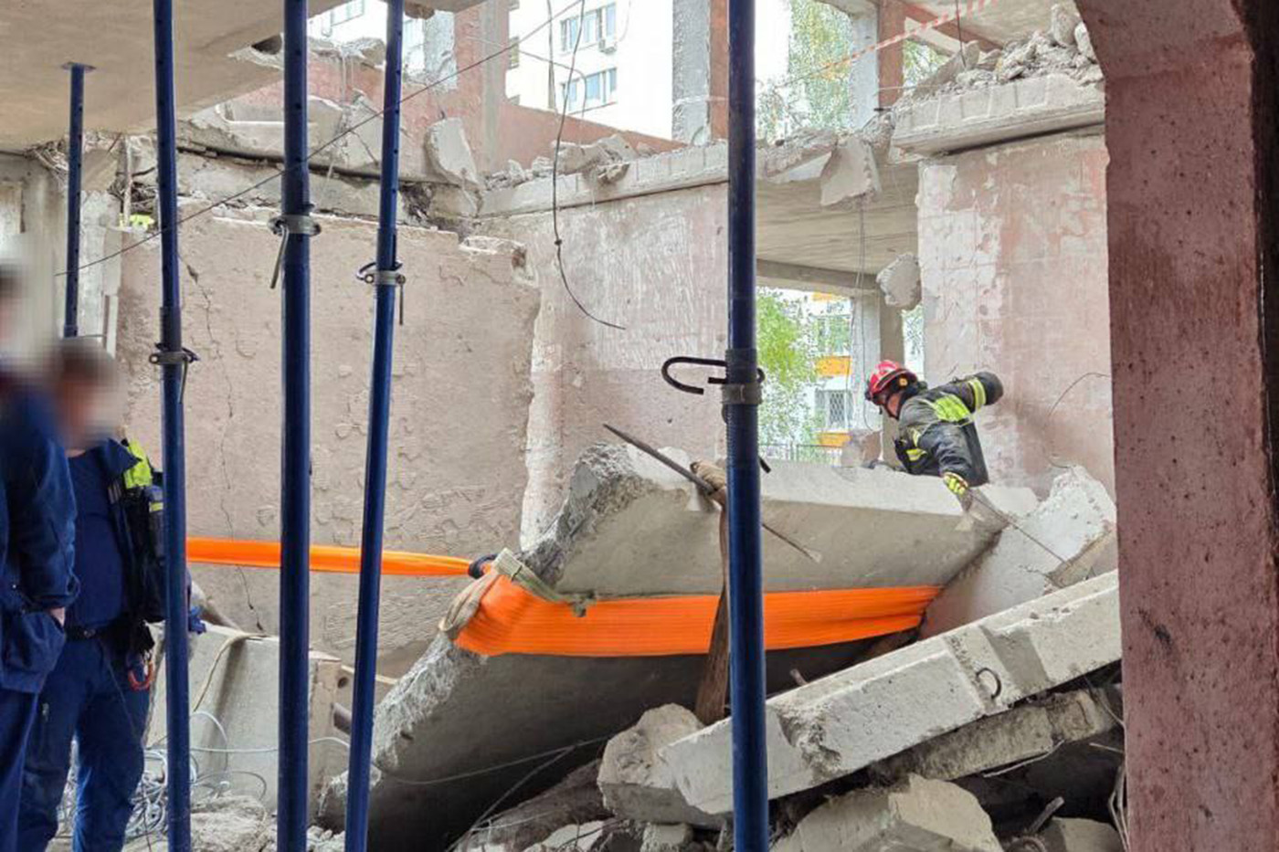 «Повреждены подвал, первый и второй этажи. Одного человека достали из-под обломков и передали медикам. Спасатели приступают к извлечению второго рабочего. По предварительным данным, он погиб. <…> Спасатели также укрепляют перекрытия, чтобы их самих не накрыло во время работы», — сообщает 360.