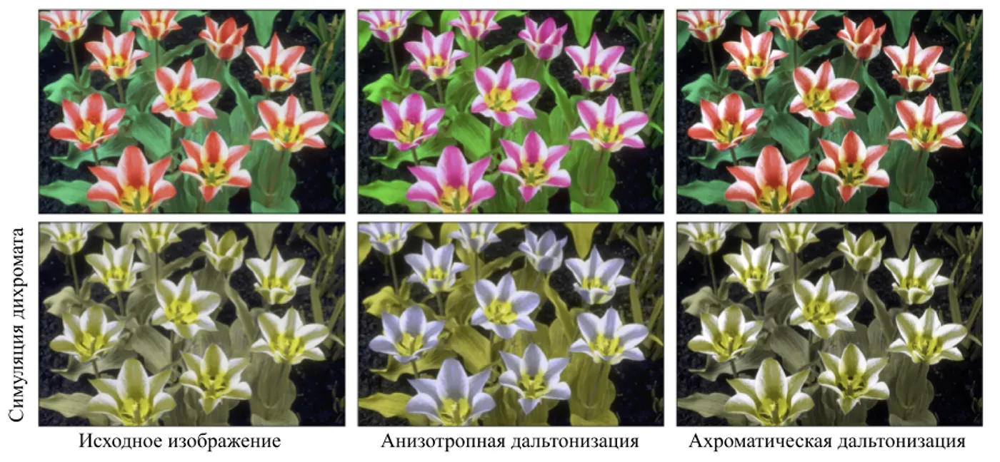 Российские ученые из ИППИ РАН, ФИЦ «Информатика и управление» РАН, и компании «Смарт Энджинс» разработали метод дальтонизации, позволяющий избежать искажения цветовой палитры.