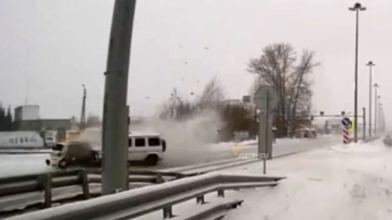 Телеграм-канал «АСТ-54 Black» публикует кадры с места происшествия. На них видно, как водитель за рулем Toyota поворачивает налево с Советского шоссе в сторону поселка Элитный. В этот момент в авто врезается Mercedes-Benz G, который ехал на красный сигнал светофора.