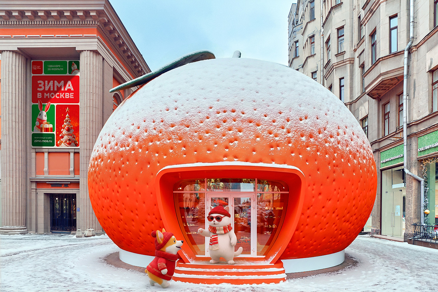 Основой репортажа стали фотографии арт-павильонов «Коньки» на Кузнецком Мосту, «Мандарин» на Арбате, «Коробка конфет» на Новом Арбате и флагманской площадки «Фабрика подарков» на Болотной площади. На кадрах кот и собака примеряют одежду и украшения, выбирают игрушки и сладости, фотографируются и «общаются» с посетителями.