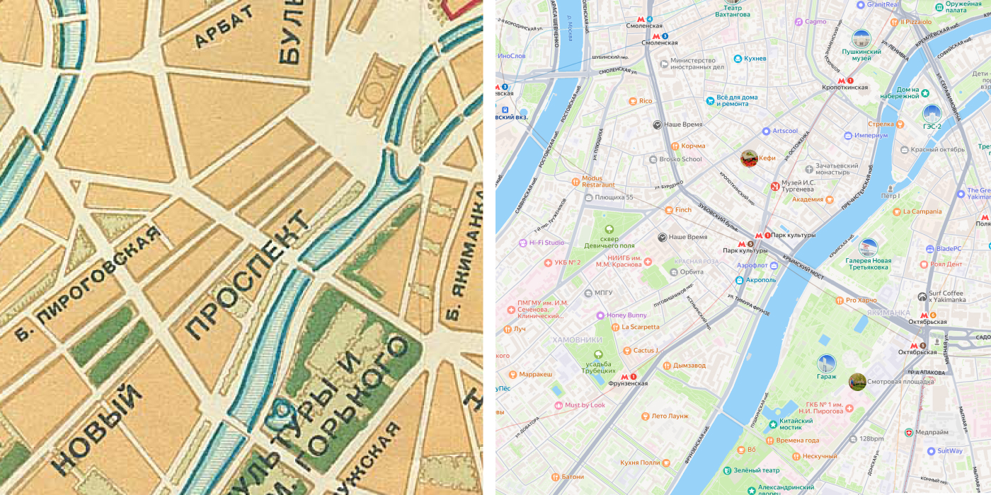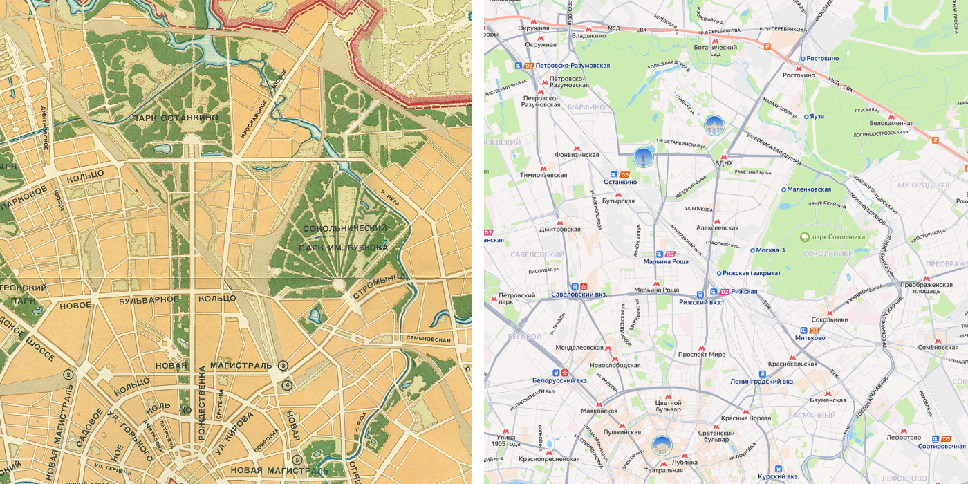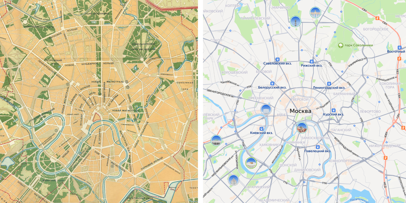 Сравнение карты генерального плана реконструкции Москвы с современной картой столицы