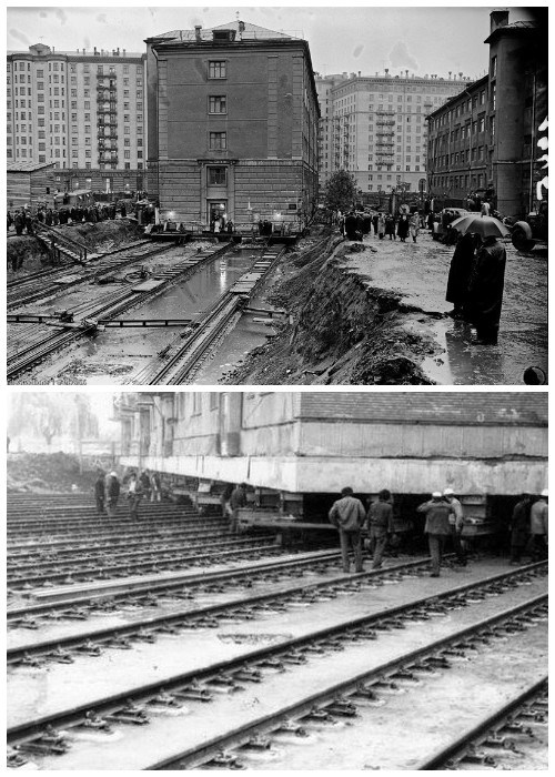 Одним из важных элементов реконструкции города было расширение Тверской улицы, которая в 1932 году была названа в честь писателя Максима Горького. Чтобы не сносить дома, расположенные вдоль улицы, в Метрострое предложили «сдвинуть» здания механическим способом.