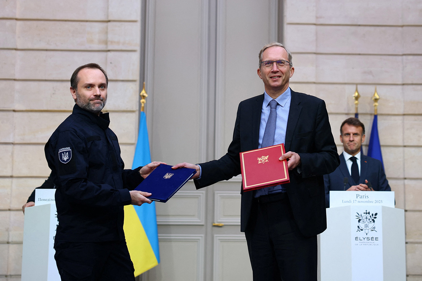 Александр Перцовский, генеральный директор «Украинских железных дорог» и Анри Пупар-Лафарж, генеральный директор Alstom, на церемонии подписания соглашения