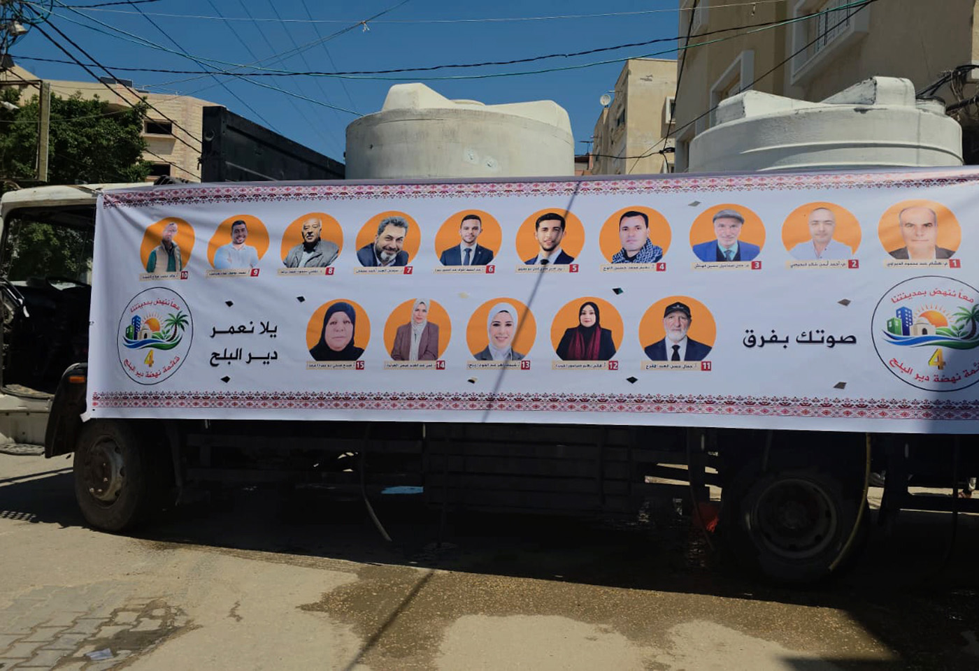 Корреспонденты Reuters передают, что улицы в Дейр-эль-Балахе украшены большими баннерами с логотипами списков кандидатов от противоборствующих партий.