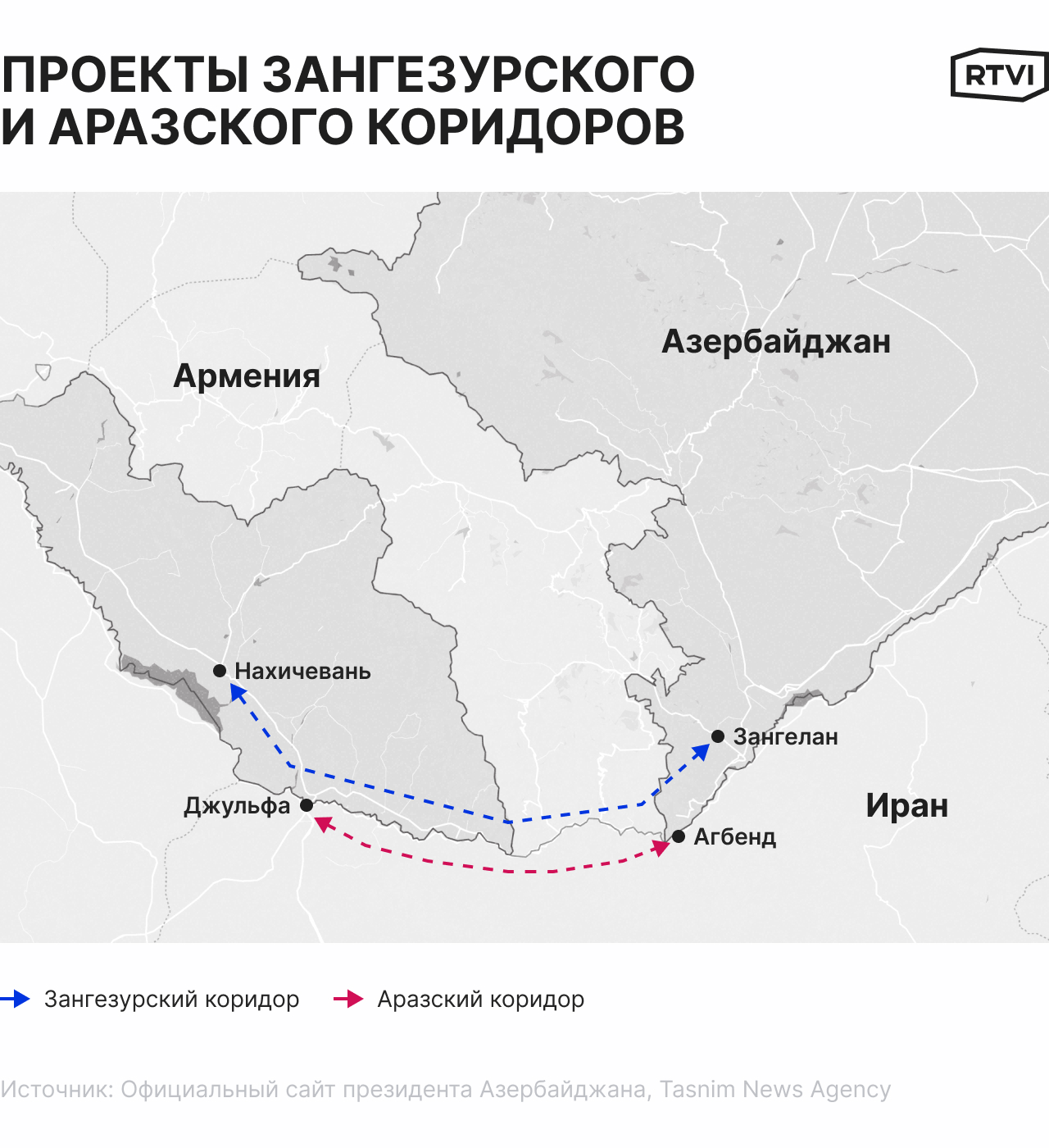 Азербайджан и Армения годами спорят из-за проектов по разблокированию транспортных путей между собой. В Баку заинтересованы в прямом наземном сообщении, которое связало бы юго-запад страны с эксклавом Нахичеванью, а Ереван предлагает построить на своей территории «Перекресток мира». В спор вовлечены Иран и Турция, также заинтересованные в выгоде от крупных логистических проектов. В борьбу могут включиться и США, готовые арендовать продвигаемый Азербайджаном Зангезурский коридор на 100 лет. Подробнее о конкуренции за стратегически значимые коммуникации на Южном Кавказе — в материале RTVI.
