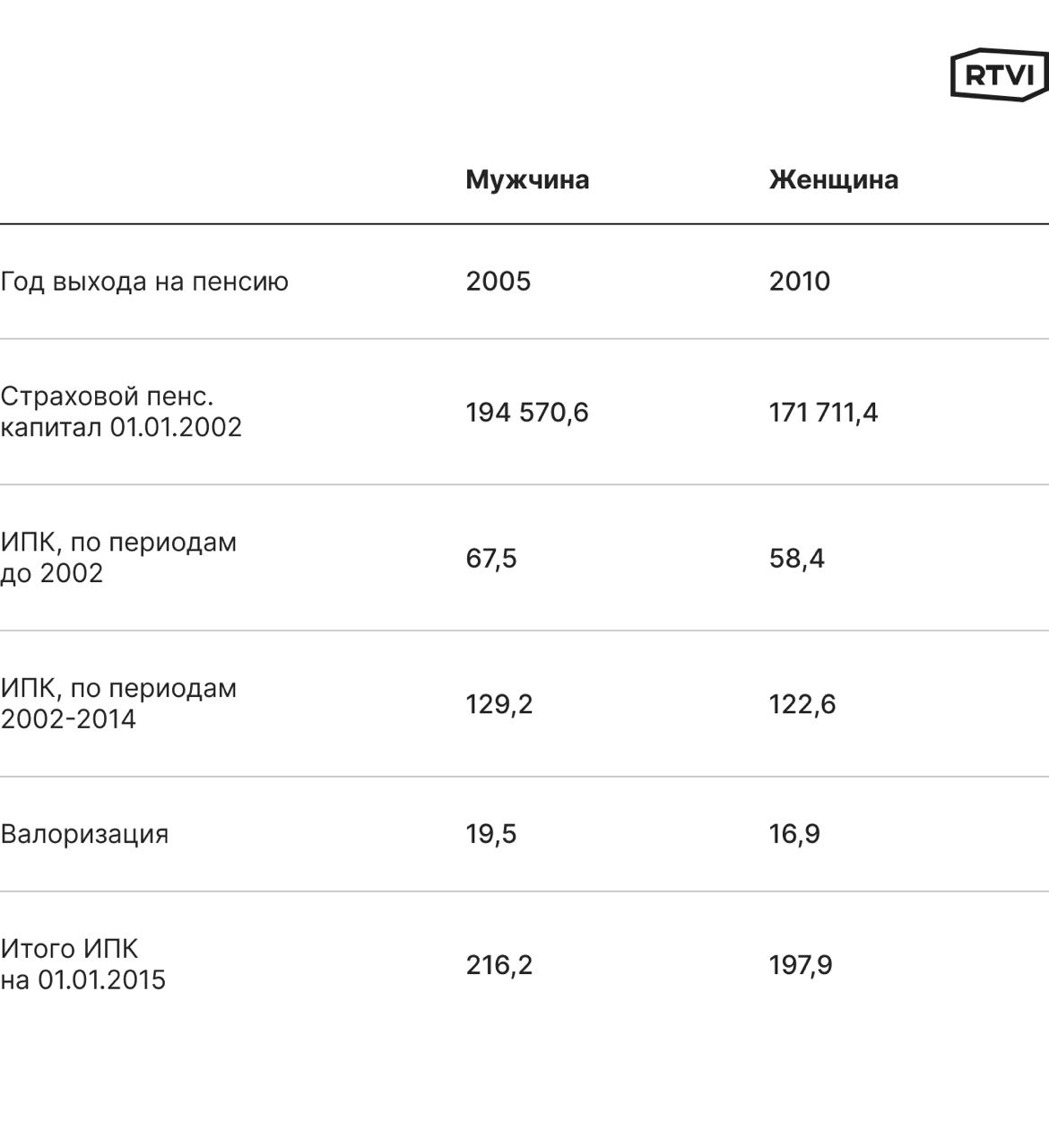 В период же с 2002 по 2014 год постоянно менялся как тариф отчислений на индивидуальную часть страховой пенсии, так и предельный размер заработной платы, с которого учитывались страховые взносы. До 2010 года действовали трех- и двухступенчатые шкалы отчислений на страховую часть пенсии. Соответственно, высокие заработки в эти годы позволяли существенно увеличить расчетный пенсионный капитал. При конвертации в 2015 году (например, при заработке в 2002 году свыше 50 тысяч рублей в месяц) женщине можно было бы получить 14,45 ИПК, а за 2009 — 7,49. Разница в этих периодах в накопленных ИПК у мужчины и женщины объясняется тем, что индексация страховых пенсий была больше, чем индексация расчетного пенсионного капитала. Таким образом, более ранний выход на пенсию в 2005 году привел бы к тому, что ежегодный перерасчет пенсий дальше индексировался в составе страховой пенсии, а у мужчин как расчетный пенсионный капитал.