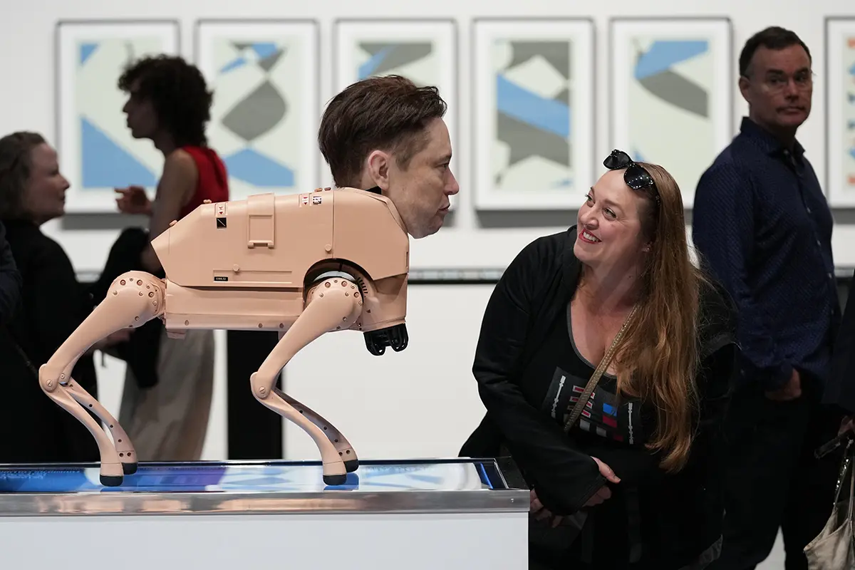 Робот, похожий на Илона Маска, в инсталляции «Обычные животные» художника Бипла на выставке Art Basel Miami Beach в Майами-Бич. Флорида, США, 3 декабря 2025 года