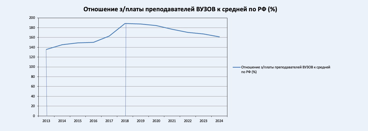 Следующий всплеск активности приходится на 2018 год, поскольку «майские указы» предписывают обеспечить заработную плату преподавателей вузов, научных работников и врачей на уровне двух средних зарплат по региону именно к этому сроку. Фонды заработной платы из года в год индексировались лишь на уровень прогнозной инфляции, которая от реальной могла отличаться в 3-4 раза. Поэтому в науке и в высшей школе указы выполняли либо посредством сокращения, либо за счет перевода преподавателей и научных работников на 0,75 или 0,5 ставки при той же нагрузке и заработной плате.
