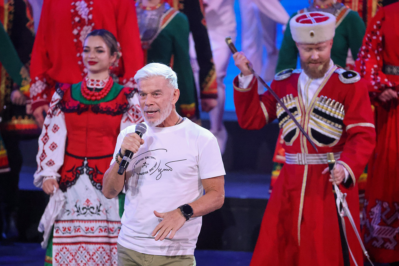 Россия. Москва. Певец Олег Газманов во время концерта, посвященного 50-летию ансамбля «Русская песня» на сцене театра «Русская песня». Евгений Мессман/ТАСС