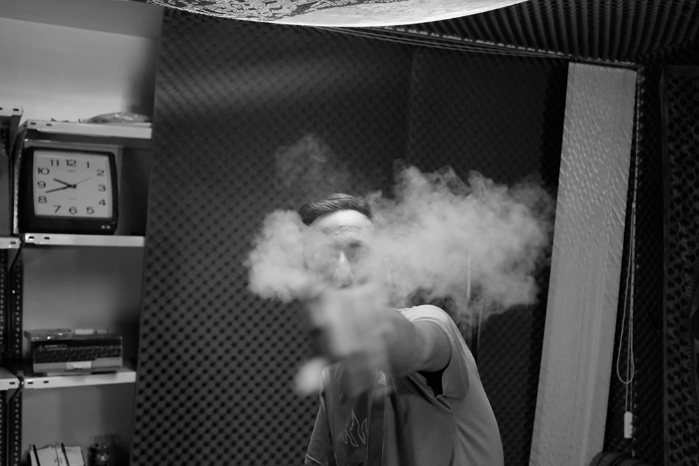 Битмейкер Prof в своей студии KNation, которая располагается в подсобном помещение