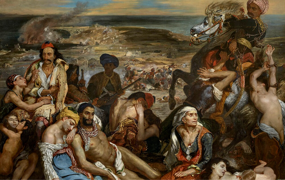 Особенно потрясла европейское общественное мнение резня на острове Хиос в апреле 1822 года. Около 23 тысяч человек были убиты, а 47 тысяч проданы в рабство. Этот эпизод стал символом османских зверств и вдохновил Эжена Делакруа на создание знаменитой картины «Резня на Хиосе».