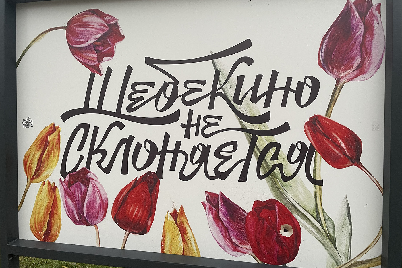 На другой картине тюльпаны с надписью «Шебекино не склоняется».