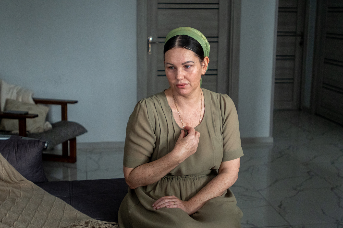 «Я в один дом захожу, вот так выбегаю, — она берется за голову, изображая ужас. — В другой захожу — выбегаю. Он говорит: „Ну что же это такое?“ Он, наверно, думал, что я вообще какая-то психотка. Но я ни разу не видела такую срамоту: обои кое-как налеплены, цветастое всякое, яркое, все разваливается, пол скрипит, туалета нет, воды нет. А где мои детки будут мыться? Что они, пойдут на улицу мыться?»